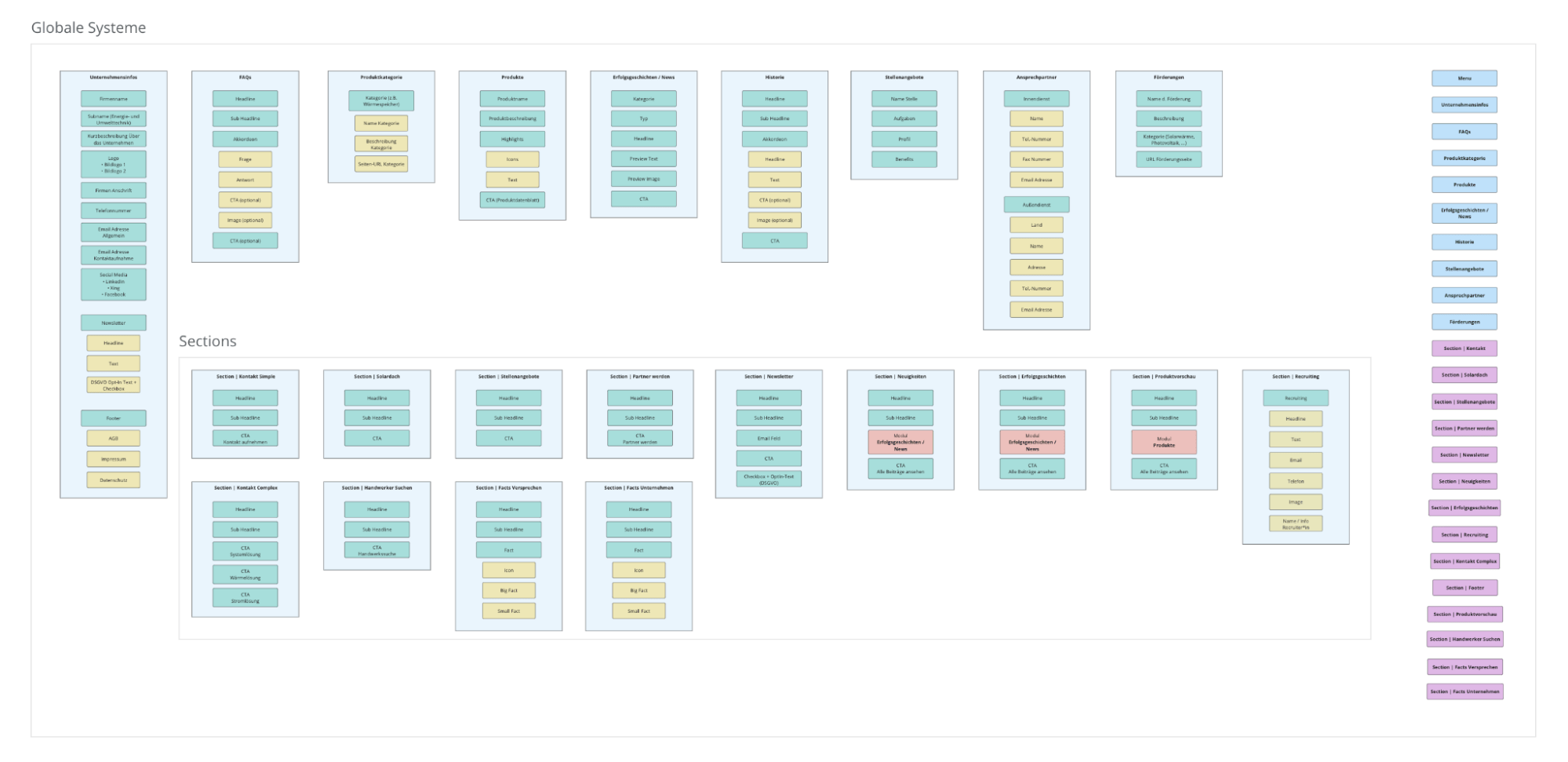 Um sicherzustellen, dass die spätere Pflege der einzelnen Content-Module effektiv und effizient durchgeführt werden kann, erstellen wir in Miro ein umfassendes Datenmodell. Dieses Modell visualisiert die Struktur jedes Moduls sowie die Verbindungen zwischen ihnen. Indem wir die Beziehungen zwischen den verschiedenen Modulen aufzeigen, können wir sicherstellen, dass wir die optimale und intelligenteste Lösung für die spätere Pflege anbieten. Wir nutzen unsere fundierten Kenntnisse in der Content-Modulierung, um zu gewährleisten, dass jedes einzelne Modul nahtlos in das Gesamtmodell integriert wird. Darüber hinaus achten wir darauf, dass das Modell so gestaltet ist, dass es flexibel genug ist, um zukünftige Erweiterungen oder Änderungen zu ermöglichen.