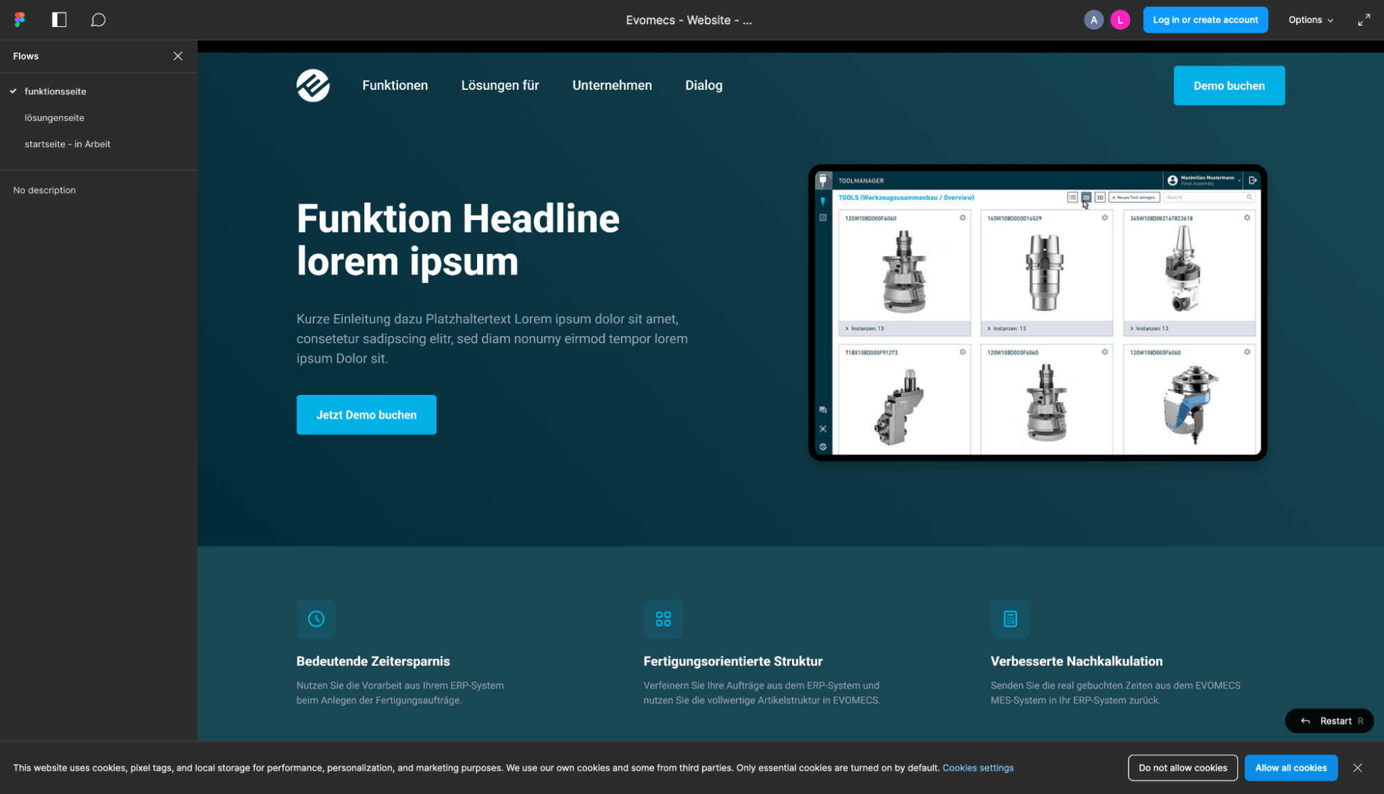 Bereits im Kickoff-Workshop haben wir eine grundlegende Richtung abgestimmt, die für alle weiteren Schritte als Ausgangspunkt dient. Nun nehmen wir uns die Zeit, das Design anhand von zwei bis drei Seiten auszuarbeiten. Dabei ist es wichtig, dass die Kund*innen sich mit dem Design identifizieren können. Sobald die Grundrichtung feststeht, geht es darum, die Farbpalette zu definieren und Feinabstimmungen vorzunehmen, um das visuelle Erscheinungsbild zu perfektionieren. Da bei Evomecs eine komplett neue Website konzipiert wurde, wurde für das Projekt jede einzelne Seite neu gestaltet und gelayoutet.